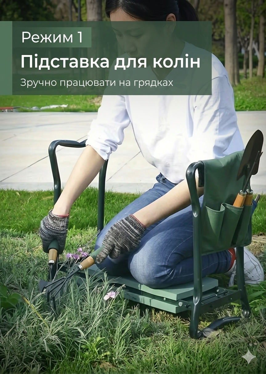 Використовуйте лавку як підставку для колін або як зручний стілець для роботи в саду