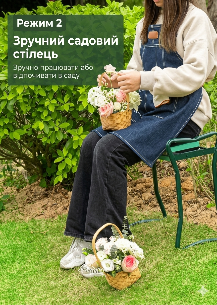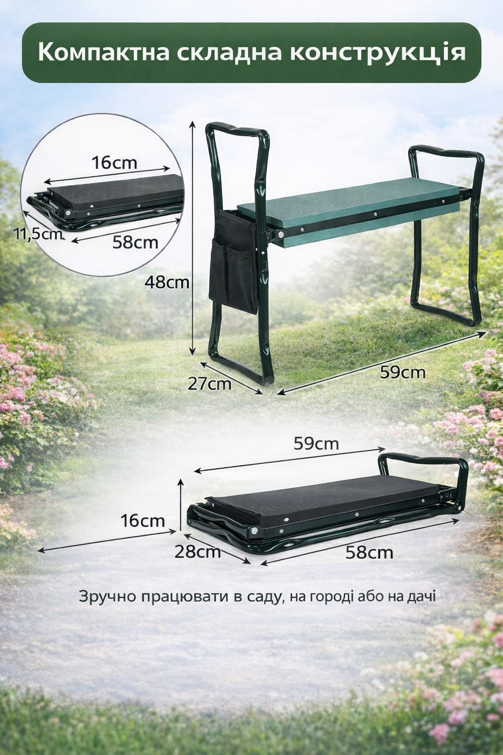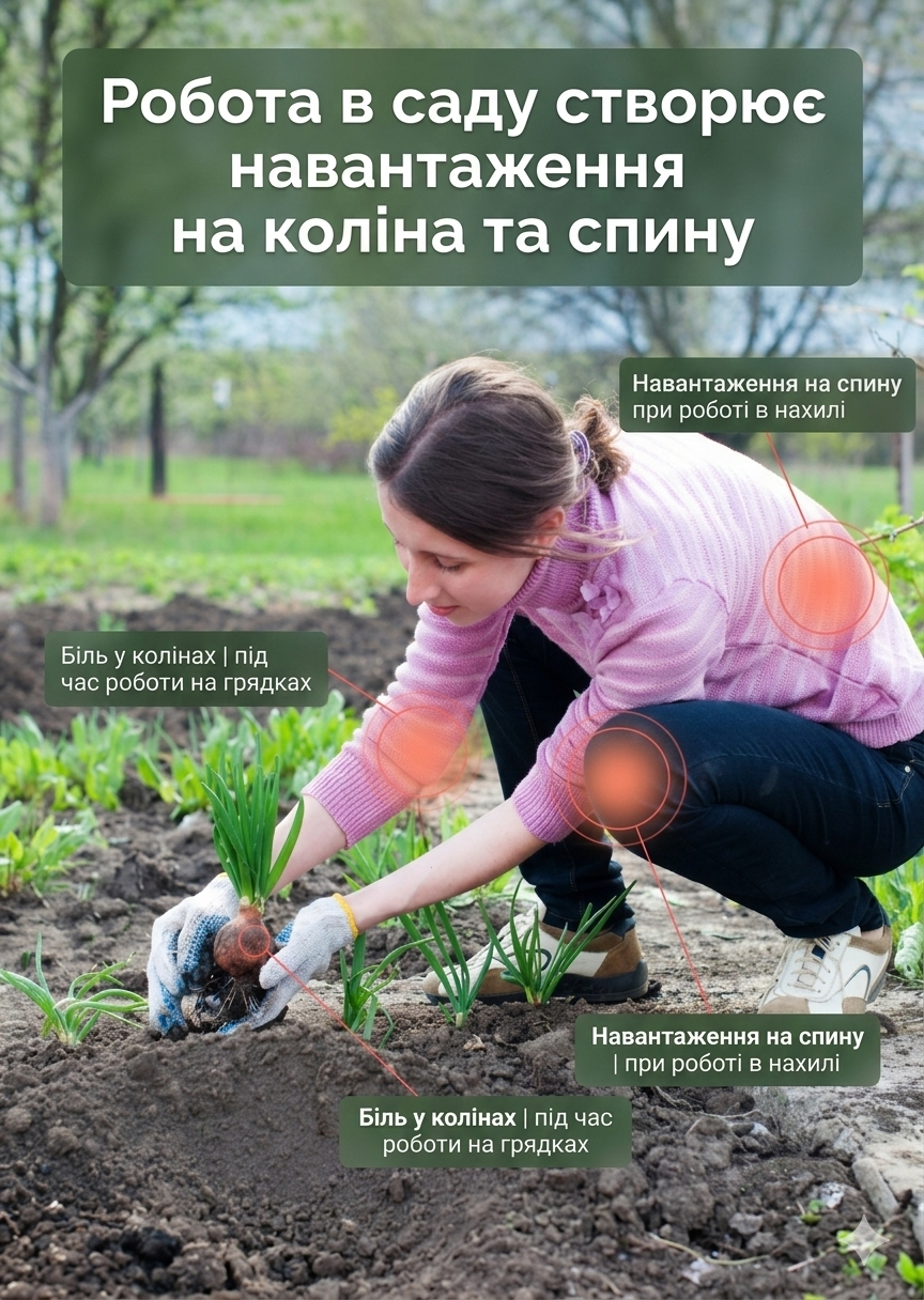 Садова лавка дозволяє працювати в саду комфортно без навантаження на спину та коліна